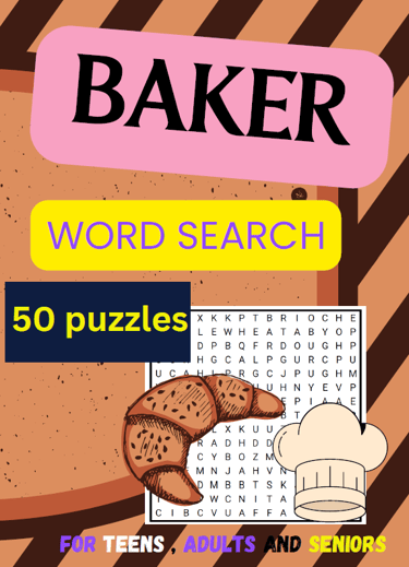 word search puzzles about baker profession for teens, adults, seniors | 50 puzzles , 8.5 x 11 in