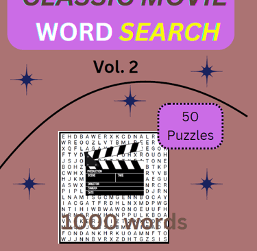 Puzzle book word search volume 2 for teens, adults and seniors about movies | 6 x 9 in , 50 puzzles , 1000 words